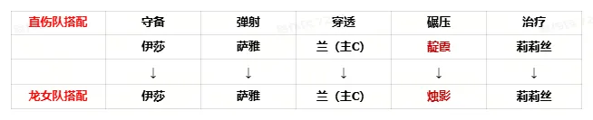 由于烛影需要30天左右才可获取,所以前期需要用其他阵容过渡。下面是主流的阵容变阵到烛影阵容的转化思路。