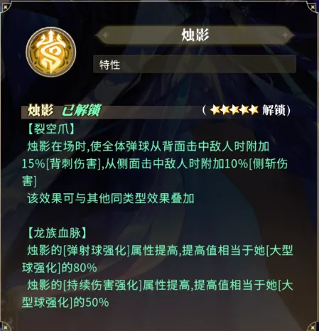 烛影的增益可以增强{持续}{背刺}{侧斩}伤害类型。拥有对应伤害类型的英雄跟烛影有很好的联动,配队时优先考虑。