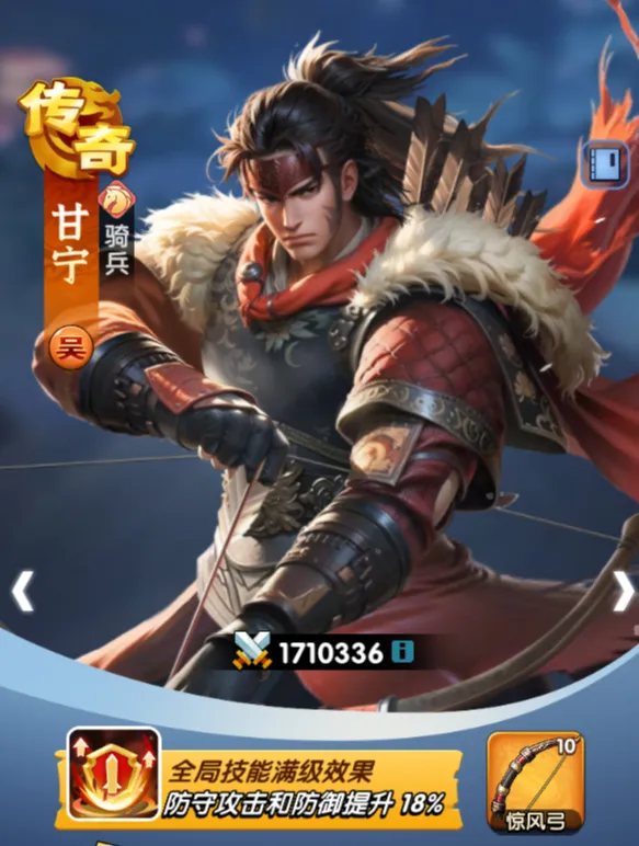 吴国队伍拿,其他人不拿。当前版本最强弓兵。提供集结加成8.5%