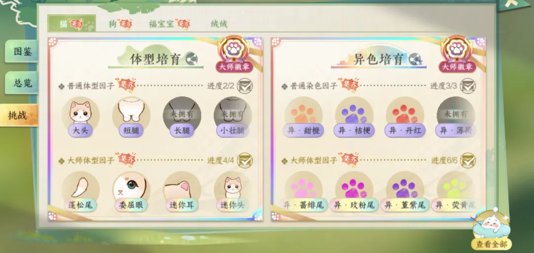 6、5月30日挑战图鉴功能上线,收集宠物异色与体型因子解锁徽章,获得奖励。奖励包含稀·萌爪币、绑定的典藏锦囊、萌闪糖、多宠跟随功能、提高外观因子遗传概率、提升周繁育次数等!