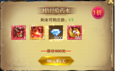 1、抢购赠送的双倍药水可以选择在闯关过程中使用,这个药水会对怪物的经验有加成