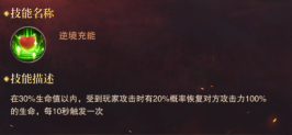 另外一个需要6转解锁的 逆境潜能-在30%的生命值以内,受到玩家攻击时有20%的概率回复对方攻击力100%的生命,每10秒触发1次
