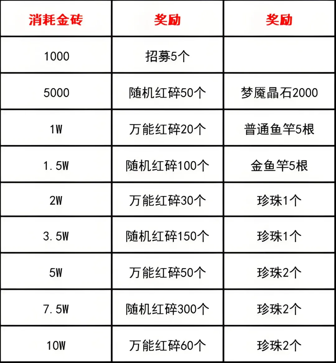 因为后面消费的5万金砖仅获得60万能+300随机+4珍珠(只算达标奖励里面的,不算额外消费购买的)